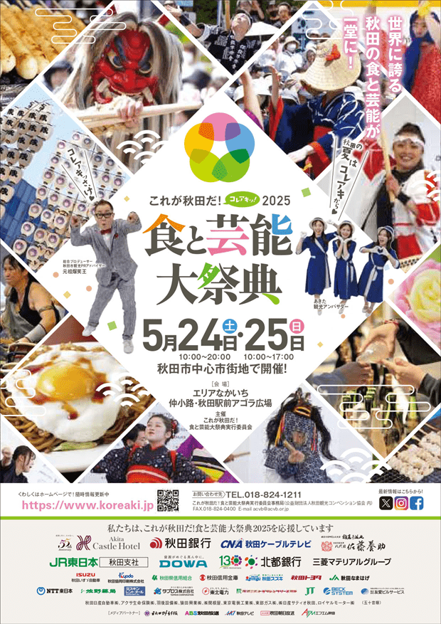 秋田県内の伝統芸能と食文化が一堂に集まるイベント。竿燈などの演舞ステージや工芸体験、地元グルメ屋台が並び、秋田の魅力を五感で楽しめる2日間の大型イベントで、「美酒王国Sake-Navi秋田まるごと市場店」も出店いたします。季節の限定酒が各種飲み比べできます。